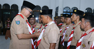 Sekdakab Natuna, Wan Siswandi saat melantik Pengurus Kwartir Ranting Pramuka Kecamatan Pulau Laut, masa bakti 2019-2022. (Foto: Kalit)