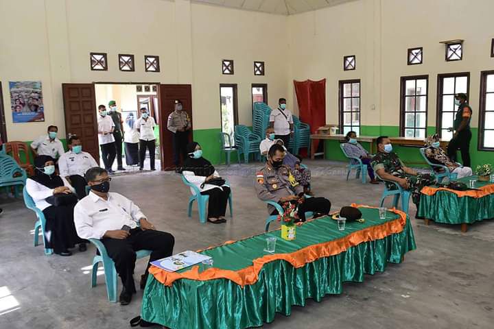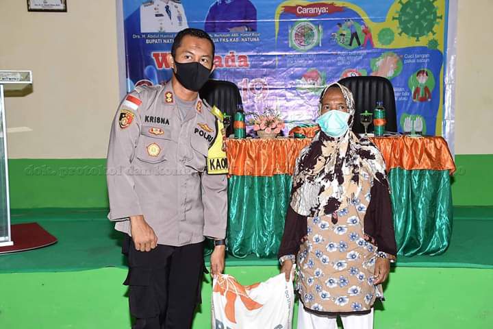 Hadir juga Camat dan Kepala Puskesmas Bunguran Tengah, petugas medis dan masyarakat perwakilan penerima bantuan pangan, di Kantor Camat Bunguran Tengah.